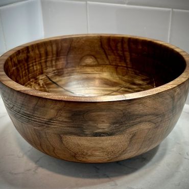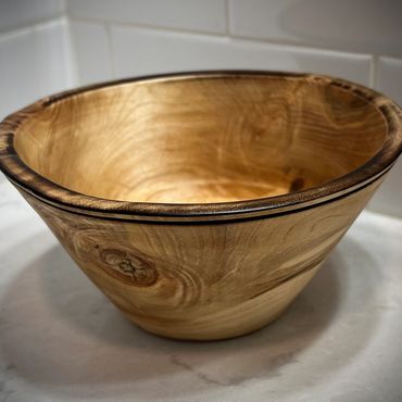 These wooden bowls are hand turned from domestic woods in a variety of natural colors and grain patterns. The beauty and warmth of the wood is preserved with a traditional finish of plant oils and wax. Since each bowl is handmade by Glenn, and the grain will vary. No two will be exactly alike.